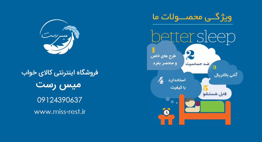 فروشگاه کالای خواب میس رست با عرضه طیف وسیع و کاملی از انواع بالش الیاف، لحاف روتختی در طرح و تنوع رنگی جذاب، انواع ست ملحفه، سایر ملزومات و محصولات کالای خواب ، سعی بر آن دارد تا با اهمیت به سلامت روحی و جسمی مشتریان، نیازشان را در این حوزه برآورده نماید.